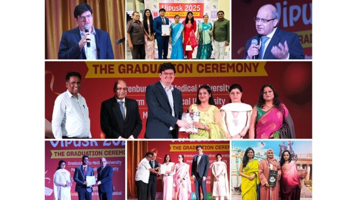 The ceremony honored graduates from three of Russia’s top medical universities — Orenburg State Medical University (OrSMU), Perm State Medical University (PSMU), and Mari State University (MarSU). The evening brought together graduates, their proud families, university representatives, and distinguished dignitaries from both India and Russia, celebrating years of hard work, perseverance, and academic success.